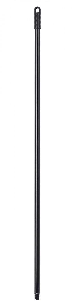 Металлический стандартной черенок для швабры с антискользящим покрытием длиной 120 см позволит делать уборку без лишних наклонов. Крепление производится из прочного долговечного пластика, имеет диаметр резьбы 21мм и подходит к стандартным щёткам, швабрам и мётлам. Отверстие в ручке позволит подвешивать изделие на черенке на крючок.