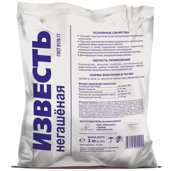Нельзя применять негашеную известь одновременно с навозом и перегноем, от такого сочетания азот очень быстро исчезнет из почвы и не усвоится растениями, взамен все полезные вещества связываются в нерастворимые соединения. Поскольку известкуют огород раз в 2 года, лучше чередовать годы внесения извести и навоза. Норма расхода — 150 г/м2.