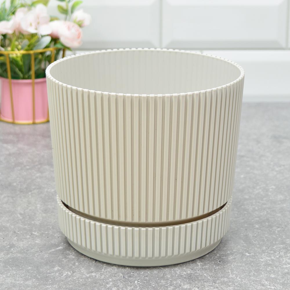 Кашпо Стрип 2,3л d17см с подставкой, кремовый