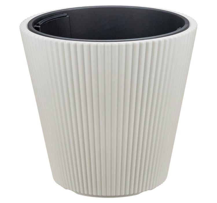 Кашпо комплектуется вкладышем (объёмом 20л), высота которого меньше высоты кашпо. Это позволяет экономить количество почвы и высаживать растения с любой корневой системой. Вкладыш оснащён удобными ручками, которые позволяют вытащить его в случае необходимости.