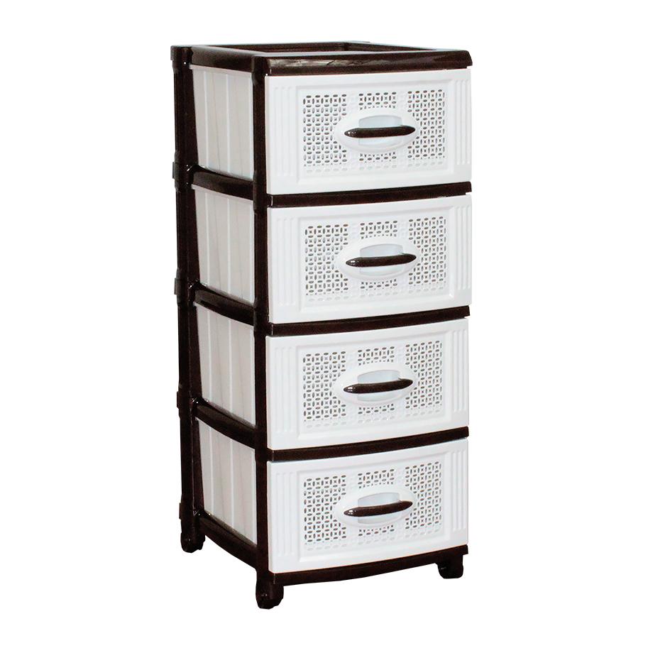 Комод с симпатичным узором состоит из четырёх выдвижных ящиков. Изделие достаточно компактное и не займёт много места. Благодаря большой глубине ящиков комод способен вместить большое количество вещей. Отлично подходит для хранения белья, полотенец, любых вещей или различных бытовых мелочей.