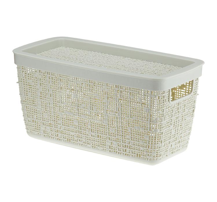 Коробка БЯЗЬ с крышкой 28х14х14cм 4л белый ротанг М 2325