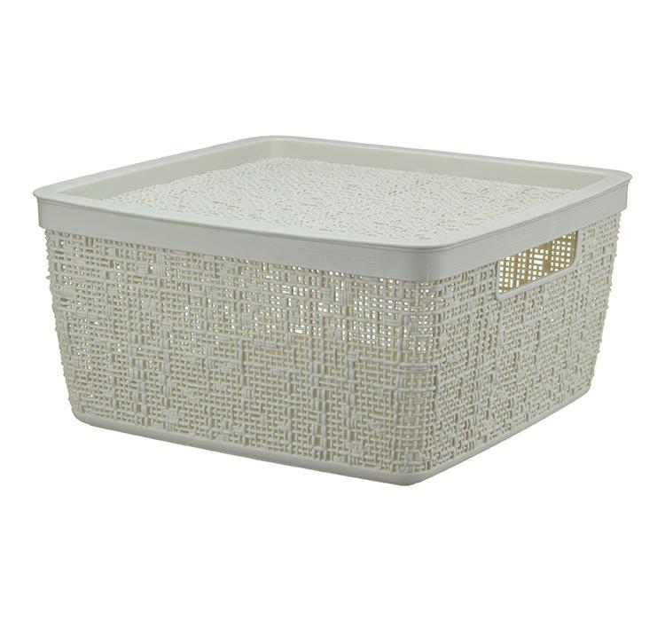 Коробка БЯЗЬ с крышкой 28х28х14см 8л белый ротанг М 2326