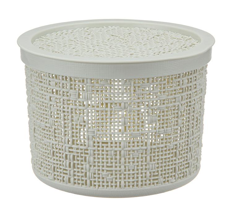 Коробка БЯЗЬ с крышкой D17см 2л белый ротанг М 2328