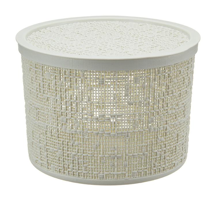 Коробка БЯЗЬ с крышкой D22см 4,5л белый ротанг М 2329