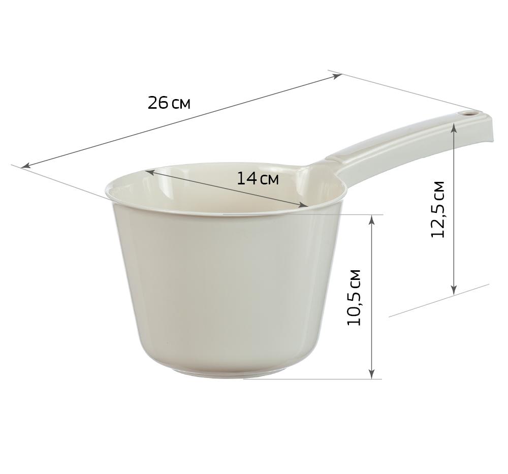У ковша есть два носика для слива, что удобно для правшей и для левшей. Внутри есть мерная шкала в литрах.