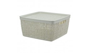 Коробка БЯЗЬ с крышкой 28х28х14см 8л белый ротанг М 2326