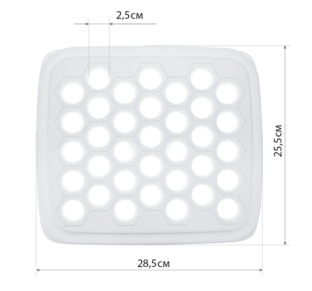 Пельменница позволяет за один раз сделать 35 пельменей. Твердый материал изделия легко разрежет тесто, если по нему прокатить скалкой. Прямоугольная форма легко ставится на бок и занимает мало место при хранении.