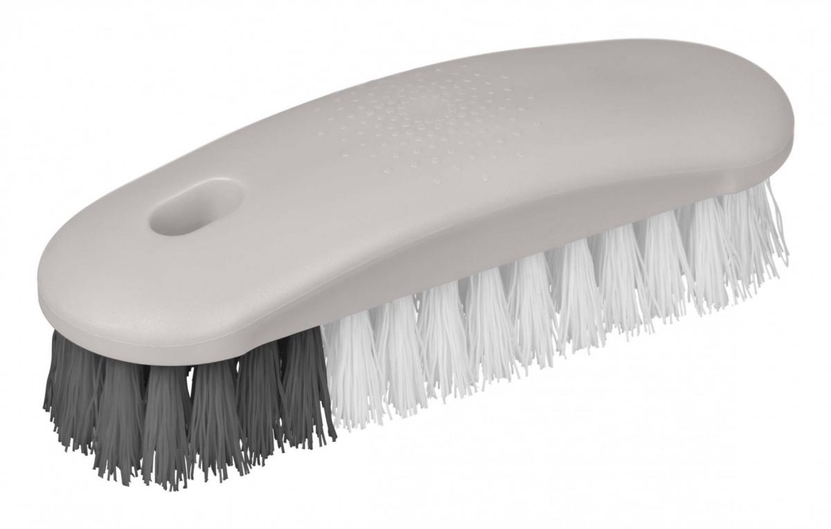 Щетка для уборки Rimo универсальна в применении и подходит для очистки различных видов покрытий и поверхностей. Универсальная щетка удобно лежит в руке. Объёмный узор на изгибе щётки не даёт ей скользить в руках. Плотная щетина эффективно справится с загрязнениями. Густой ворс имеет среднюю универсальную жесткость. Щётка Rimo — оптимальное решение для мытья ванной и кухни, чистки мебели из жестких тканей, ковровых покрытий, салона автомобиля и другого. Щётку для уборки Rimo можно хранить в подвешенном состоянии за специальное отверстие в корпусе.