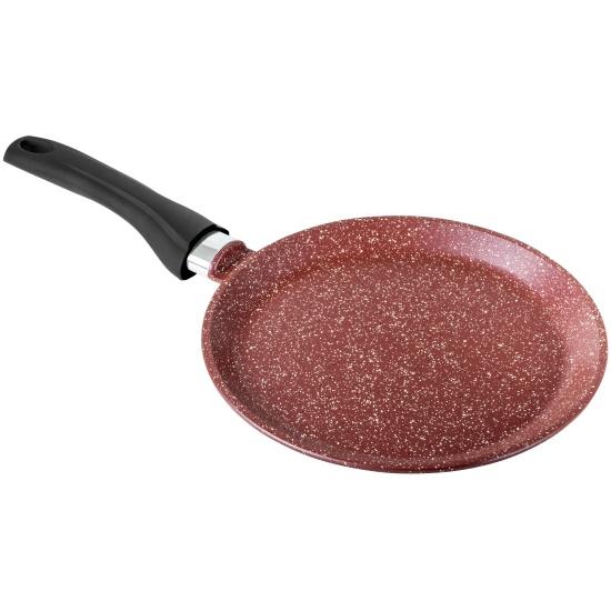 Блинная сковорода с антипригарным покрытием – литая алюминиевая посуда, подходящая для газовых, электрических, стеклокерамических плит. При минимальном использовании масла получаются тонкие блины и пышные оладьи. «Шоколад». Коллекция «мраморной посуды» с улучшенным четырёхслойным антипригарным покрытием. Дополнительный слой с мраморным эффектом увеличивает износостойкость и создаёт цветовой эффект мрамора шоколадного оттенка.