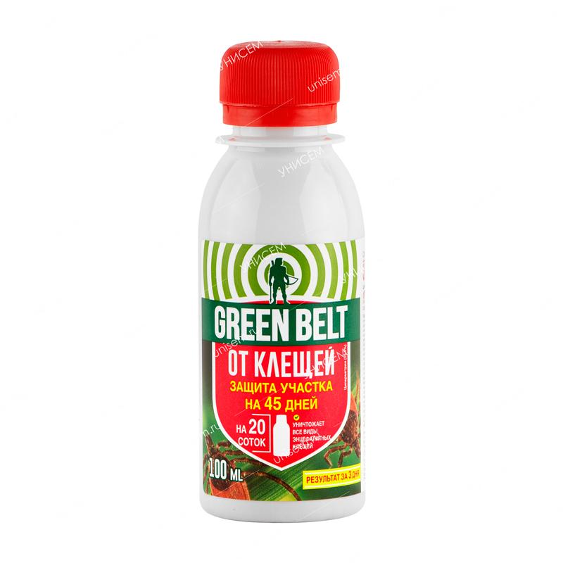 Green Belt от клещей – высокоэффективное инсектоакарицидное средство. Применяется для уничтожения иксодовых клещей (переносчиков возбудителей клещевого энцефалита, боррелиоза и других заболевания) на приусадебных, дачных и садовых участках. Препарат обладает быстрым эффектом – насекомые полностью исчезают через 3 дня, длительным защитным периодом (45 дней). В качестве действующего вещества используется – циперметрин (25,0%), а также в состав входит ПАВ и растворитель.