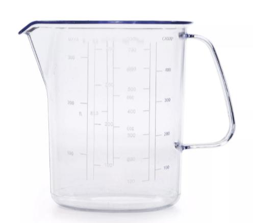 Классическая мерная кружка на 1л с делениями для воды, сахара, муки и риса. Изделие изготовлено из полипропилена, что позволяет использовать его по горячие продукты.