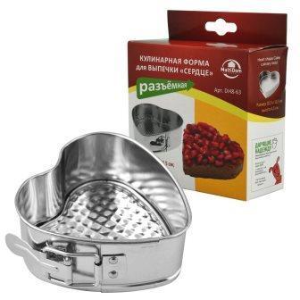 Металлическая форма для выпечки в виде сердца удобна для выпекания коржей, пирогов и кексов из густого и жидкого теста. Конструкция со съемным дном и раздвижным механизмом позволяет легко вынимать готовую выпечку без нарушения ее целостности. Чтобы коржи не пригорали, дополнительно используйте бумагу для выпечки. Форма подойдет для духовок всех типов, изготовлена из луженой стали. Размер 10,5х10,5 см, высота 4,5 см. Изделие можно мыть в посудомоечной машине.