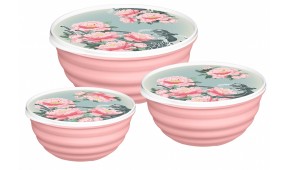 Комплект мисок "Latina" 3 шт. (1,1л+2,1л+3,2л) с крышками с декором "Сад пионов" (розовый)223152508/04/10/