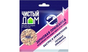 Родентицид Зерновая приманка от крыс и мышей (пак 200 г) ЧИСТЫЙ ДОМ - 50 шт/кор.03-028
