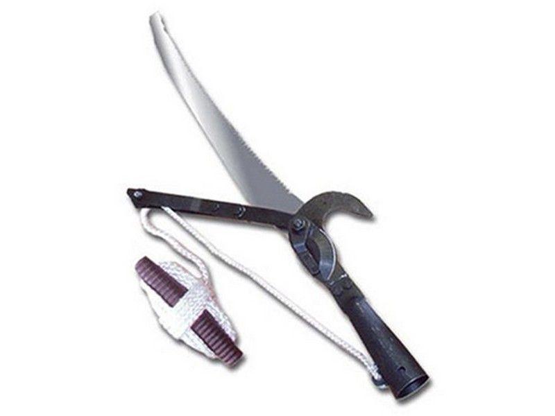 Предназначен для обрезки веток деревьев на высоте. Очень удобен для резки веток в труднодоступных местах. Металлический, комплектуется шнуром и ножовкой, без черенка, диаметр тулейки 30мм. Длина изделия в сборе с ножовкой 530мм. Габариты: 0,56х0,16х0,04 м Вес: 0.58 кг Количество в упаковке: 12 шт